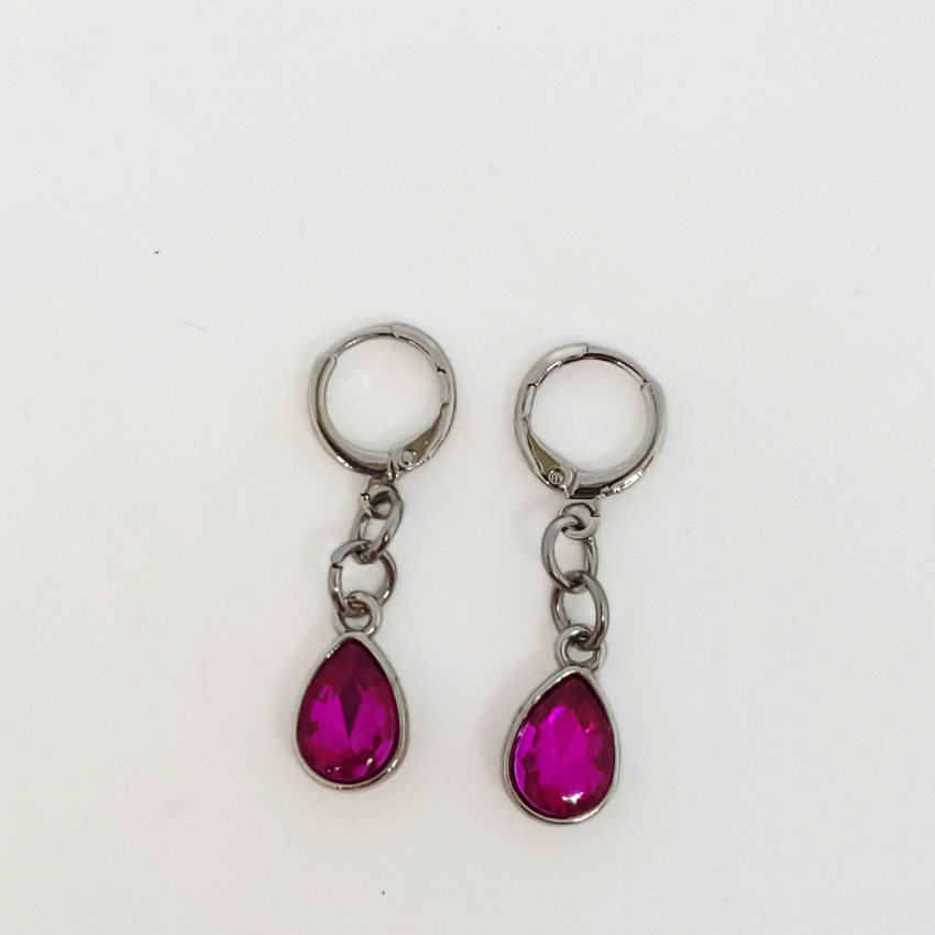 Stunning vibrant cerise pink glass gem & silver earrings. Made with nickel free huggies(low allergen)